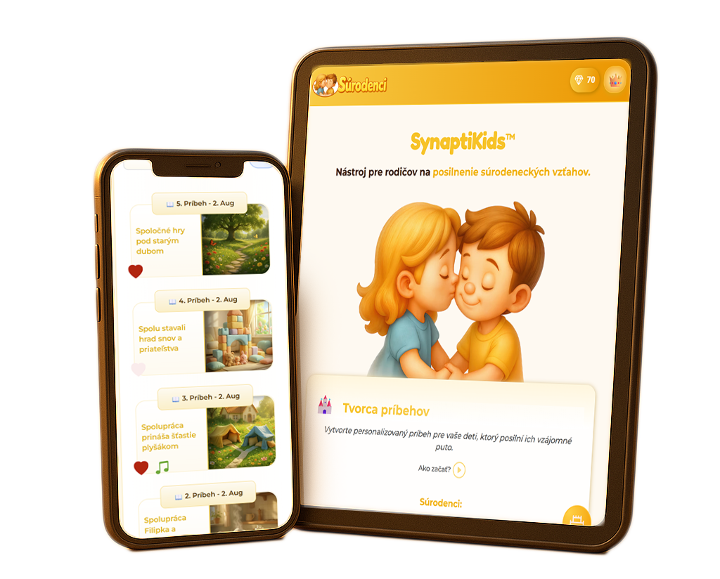 Kompletný systém 3 v 1: e-kniha (neurovedecké poznatky) + aplikácia (personalizované príbehy s vašimi deťmi ako hrdinami) + audiokniha (dnes zdarma). Pre rodičov súrodencov 2–10 rokov.